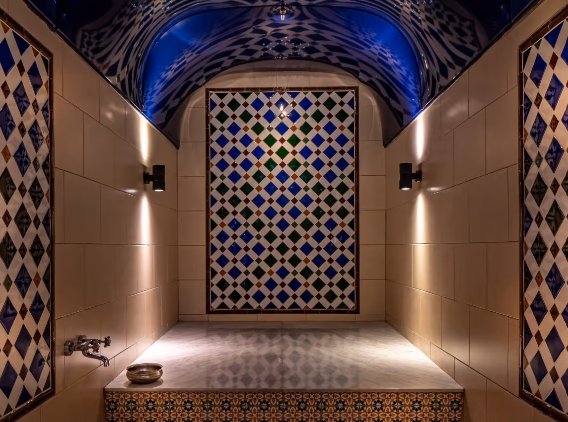 Guests also enjoy access to Kingham Cottages’ shared amenities: a heated indoor swimming pool, tennis court, and the Moorish Pavilion with its hammam-style Turkish bath. The landscaped gardens surrounding the cottages are dotted with sculptures, creating an atmosphere of calm and artful beauty.