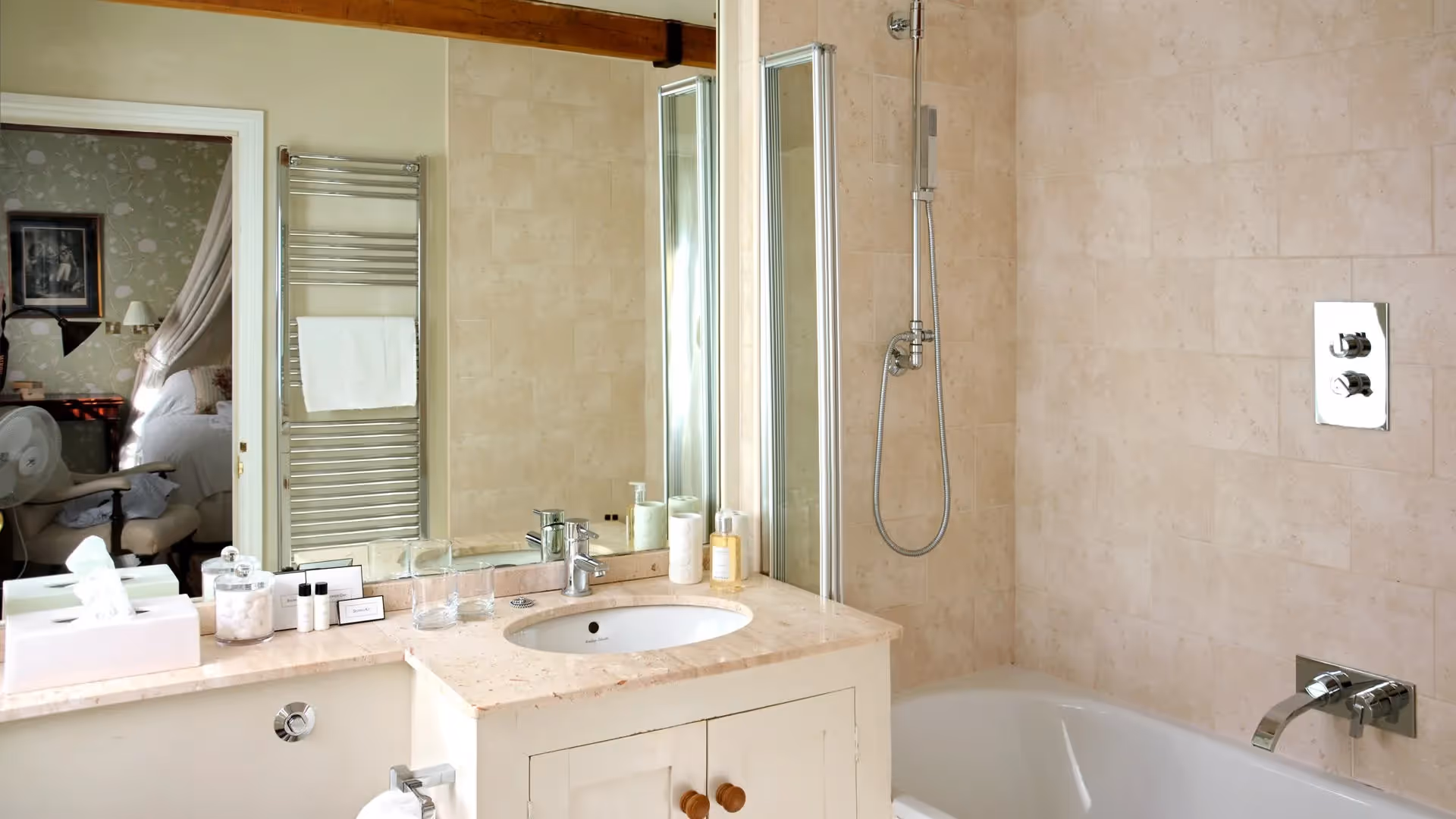 Cope Cottage is a romantic one-bedroom retreat at Bruern, converted from the original mill house of Bruern Abbey. With its vaulted library-drawing room, Gothic stone fireplace and trellised terraces, it offers chateau-like elegance for two in the heart of the Oxfordshire Cotswolds.