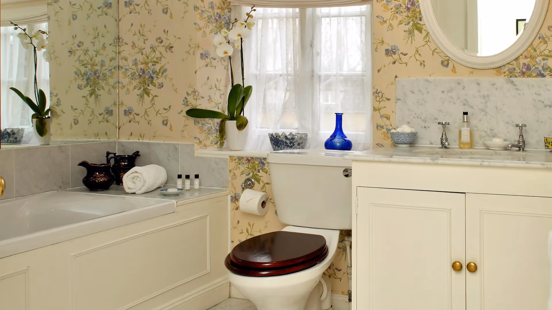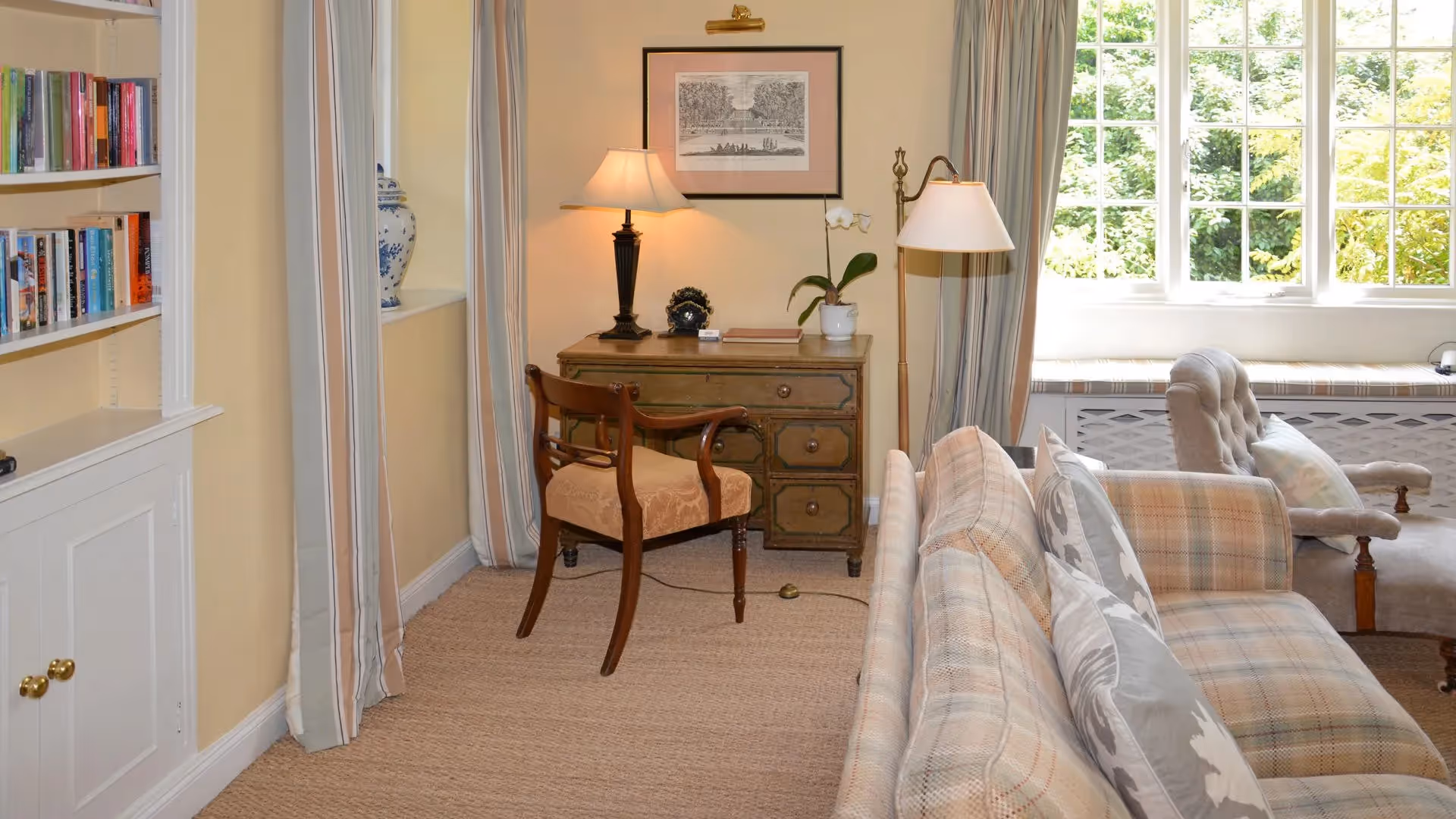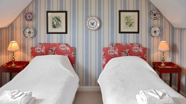 Throughout, interiors reflect Bruern’s hallmark style: traditional fabrics, comfortable furnishings and a sense of understated English charm.