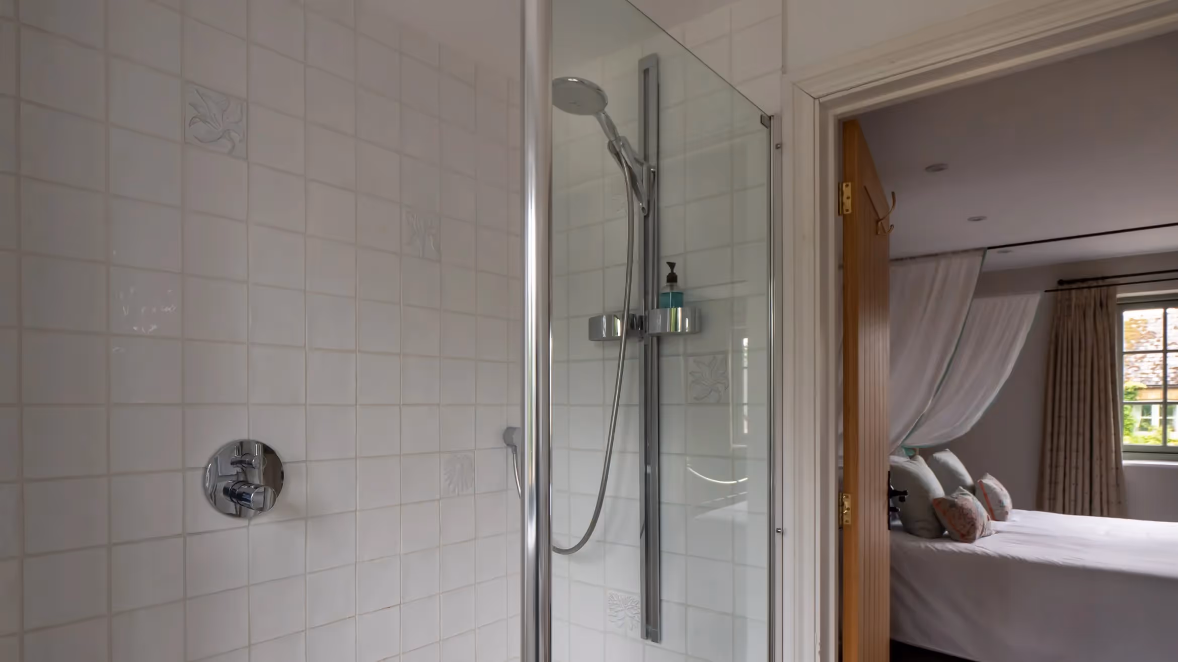 On the first floor, the master bedroom features its own en-suite bathroom and calm, neutral styling. A second twin bedroom also benefits from an en-suite. The family bathroom, complete with bath and full-height shower, serves the additional twin bedroom.