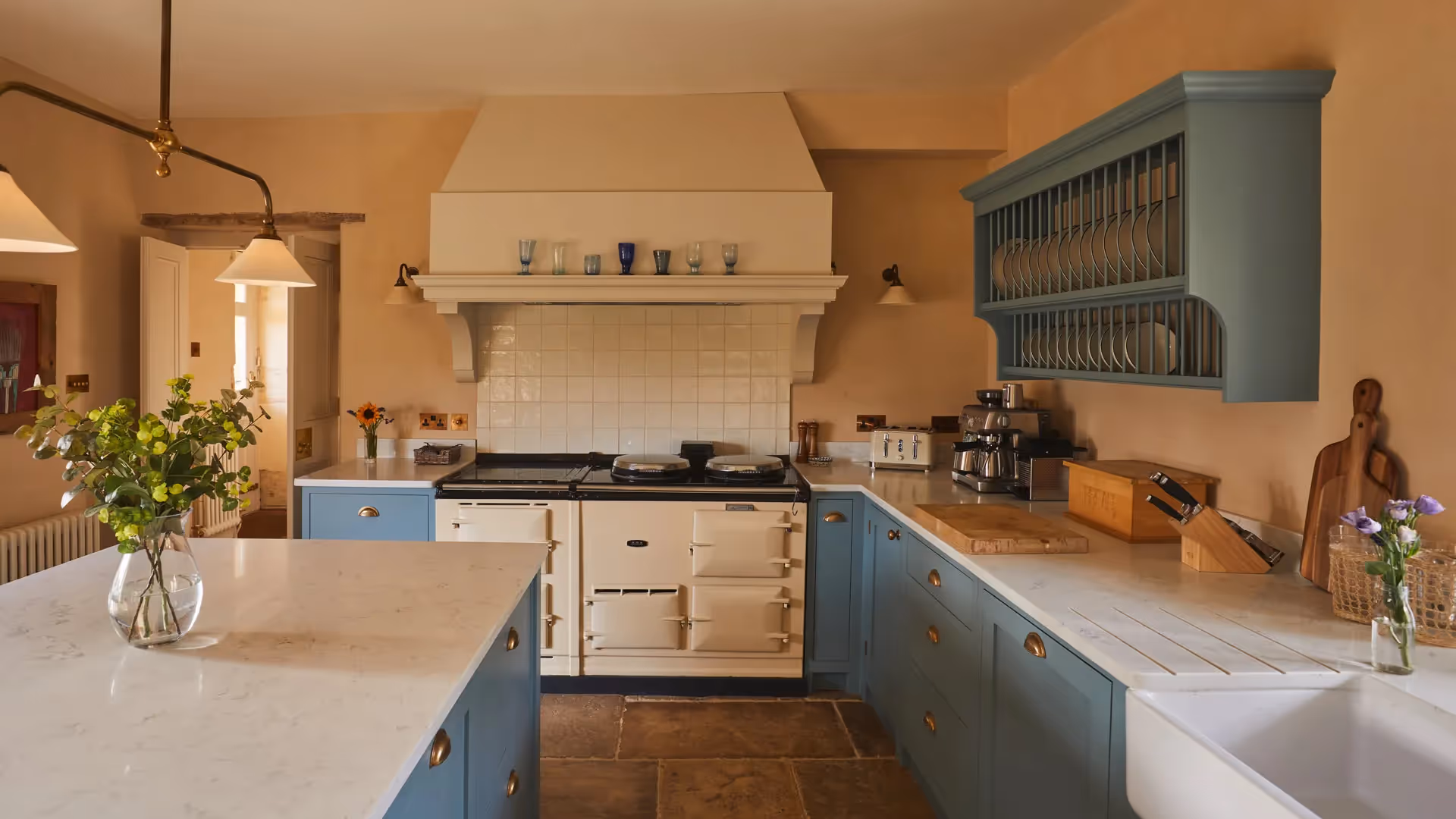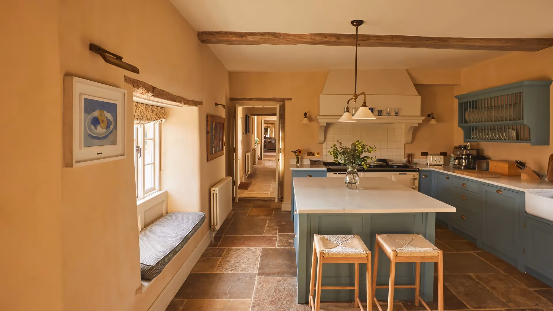 Accommodation is arranged across The Farmhouse, The Stone Barn, The Cottage and The Dutch Barn. Each building has its own kitchen and living areas, making the estate particularly well suited to multi-generational stays or groups of families sharing.