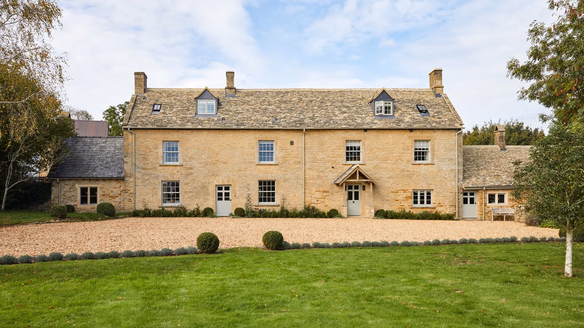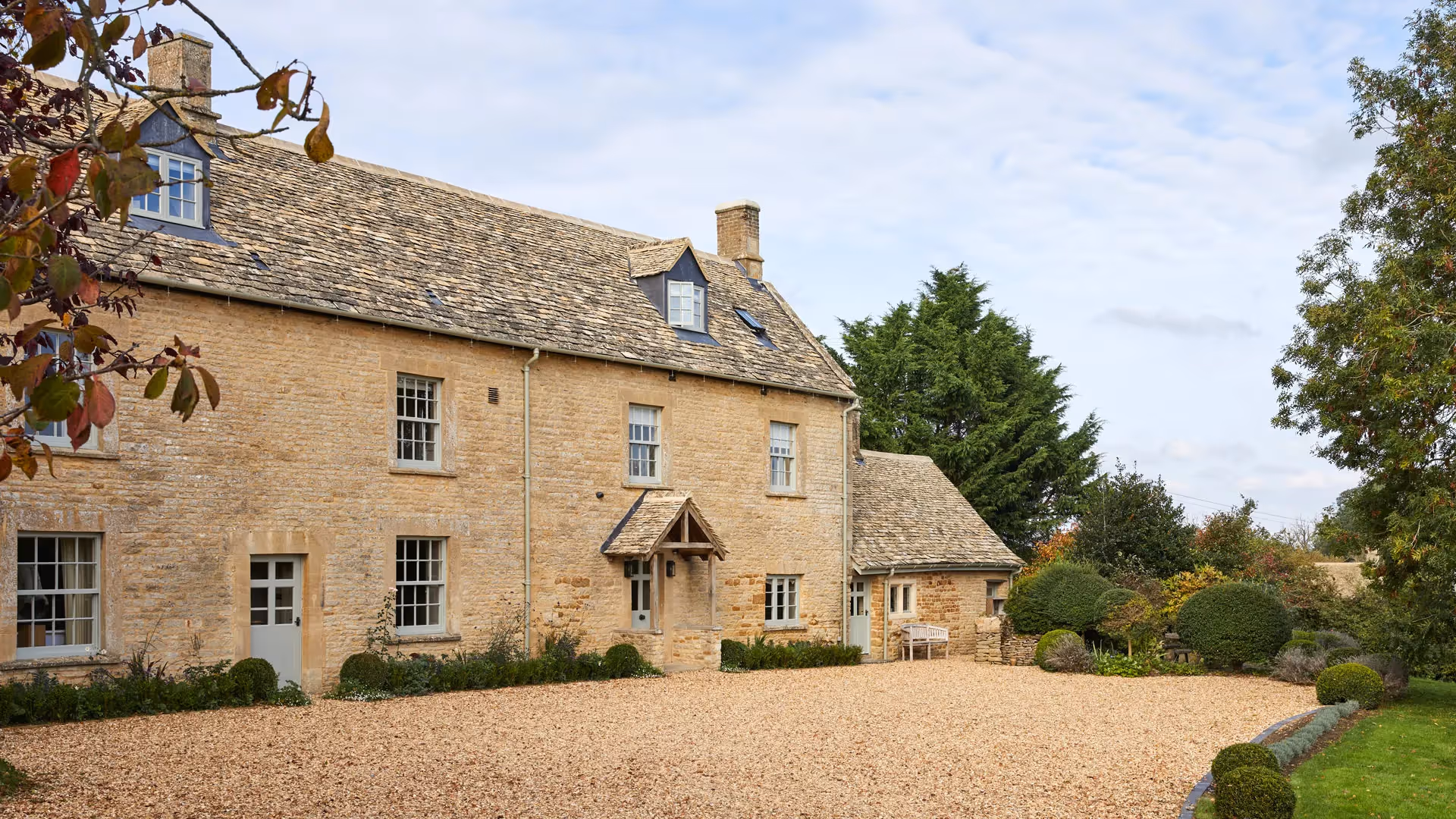 Latimer Farm Estate in Oddington is a 19th-century listed farmhouse estate reimagined as one of the Cotswolds’ most luxurious private retreats. Set within landscaped gardens, orchards and open fields, it sleeps 20 guests across four beautifully restored buildings with a heated outdoor pool, tennis court, gym and sauna — designed for gatherings, celebrations and extended stays.