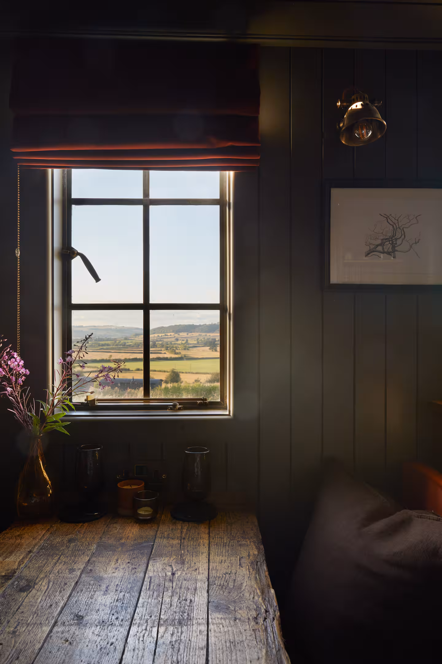 A peaceful hilltop hut with long views over the Vale of Evesham, designed for slow, easy days in nature. Blending simple comforts with warm, well-chosen details — from the kingsize bed to the log burner — it’s a calm, beautifully put-together space for two.