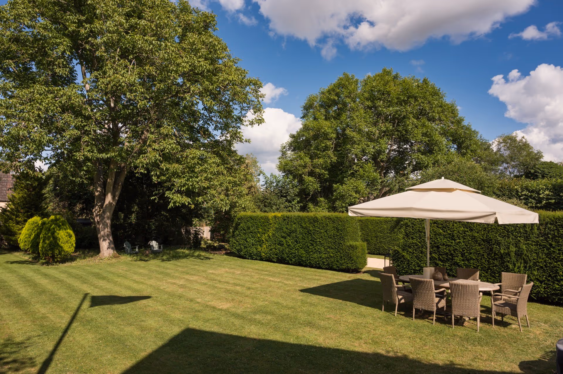 To the front and rear, the immaculate walled gardens unfold in lawns, mature trees, and colourful borders. Multiple seating areas provide sun and shade throughout the day, with a gas barbecue and space for alfresco dining. Guests can enjoy croquet or boules on the lawn or simply take in the calm of the countryside.