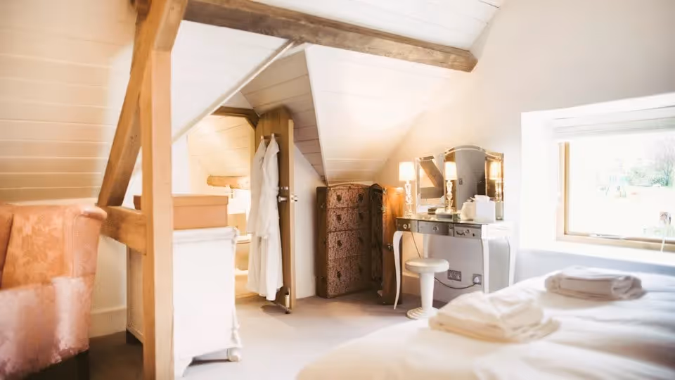 Five en-suite bedrooms sit within the Barn, each individually styled. Four can be arranged as twins. The sixth en-suite bedroom is in the Peacock Shed, close by but separate enough to suit guests who want a little more privacy.