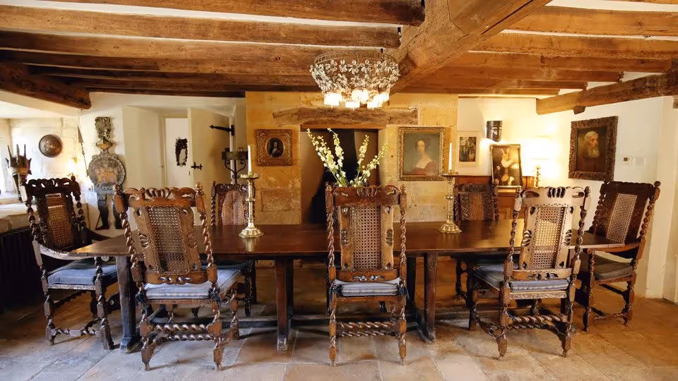 The adjacent Granary is fully self-contained, with three double bedrooms, each en-suite, providing privacy and flexibility for guests who prefer independent space while remaining part of the wider group. Across the Manor and Granary, eight bedrooms accommodate up to sixteen guests in comfort.