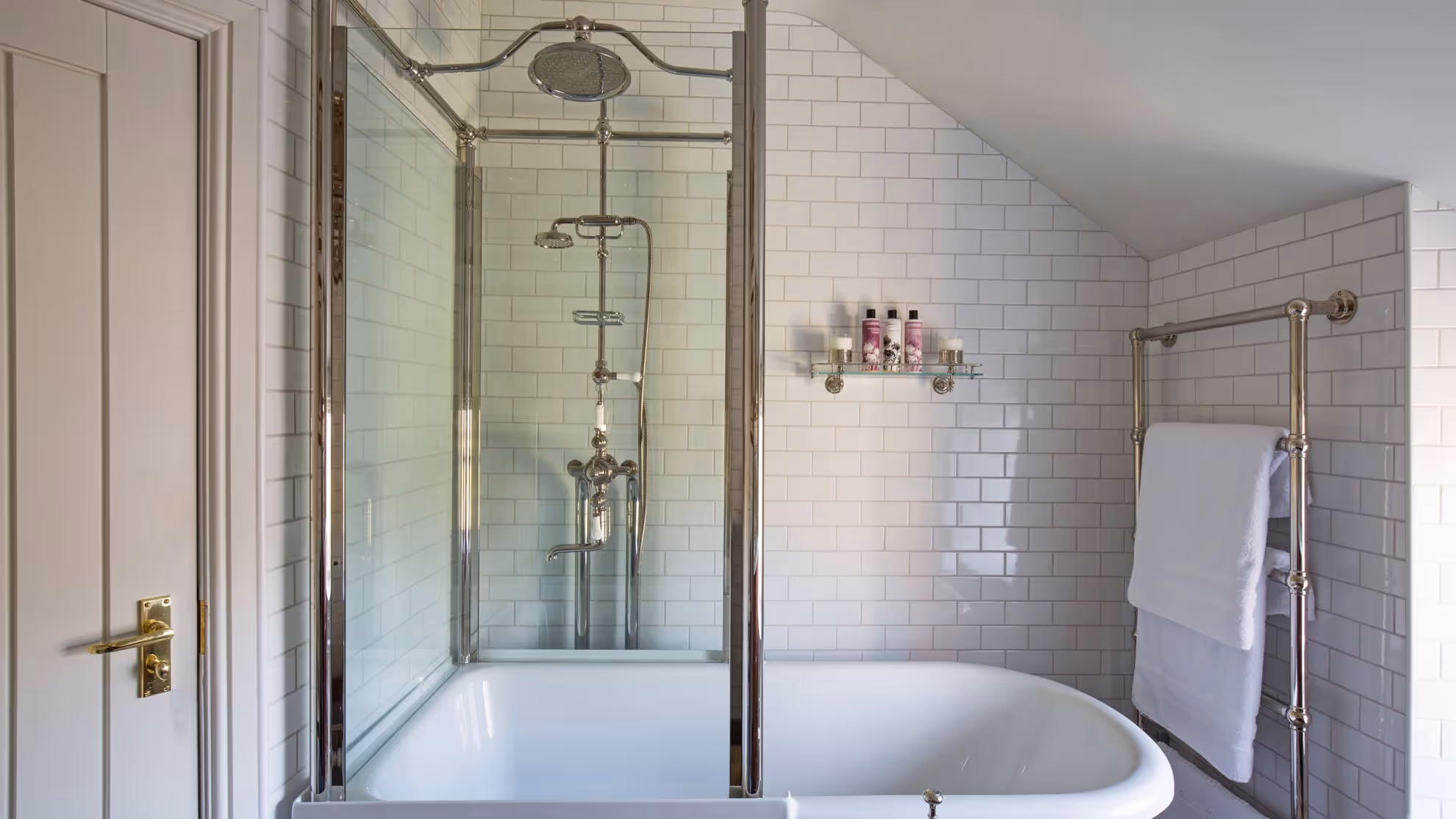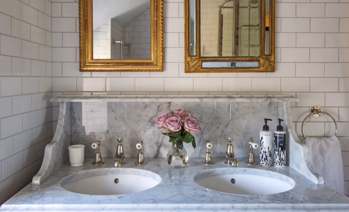 Upstairs are two beautifully appointed double bedrooms and a family bathroom, while a third double bedroom is housed in a separate garden suite — an ideal setup for guests seeking space and privacy. Bathrooms are finished to a high standard, combining classic fittings with understated style.